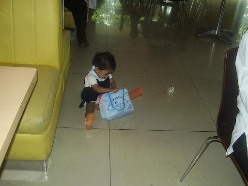 Sebaliknya bagi Aqila, pembuatan pizza itu menyenangkan. Walaupun mungkin belum mengerti betul apa yang dia lakukan, tapi dia selalu ingat kalau ditanya. Kecenderungannya untuk mengeksplor ruang terlihat ketika dia sibuk sendiri jalan-jalan, sambil dorong kursi, atau membongkar tas. Dia tidak merasa canggung berada di tempat asing dengan teman-teman relatif sebaya yang baru dikenalnya. Berikut sejumlah kegiatan yang sempat terekam. Foto-foto selengkapnya bisa dilihat di Album Bikin Pizza. Mohon maaf sebelumnya, saya sama sekali tidak bermaksud untuk mempromosimokan produk atau merek tertentu.